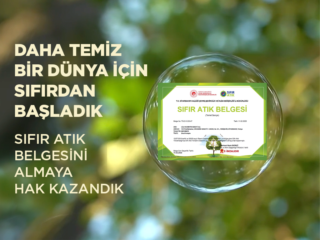 SürdürülebilirlikSıfır Atık Belgesi12/07/2019 tarihli ve 30829 sayılı Resmi Gazete'de yayımlanarak yürürlüğe giren Sıfır Atık Yönetmeliği'nce Sıfır Atık Yönetim Sistemi'ni kurarak Sıfır Atık Belgesi'ni almaya hak kazandık.